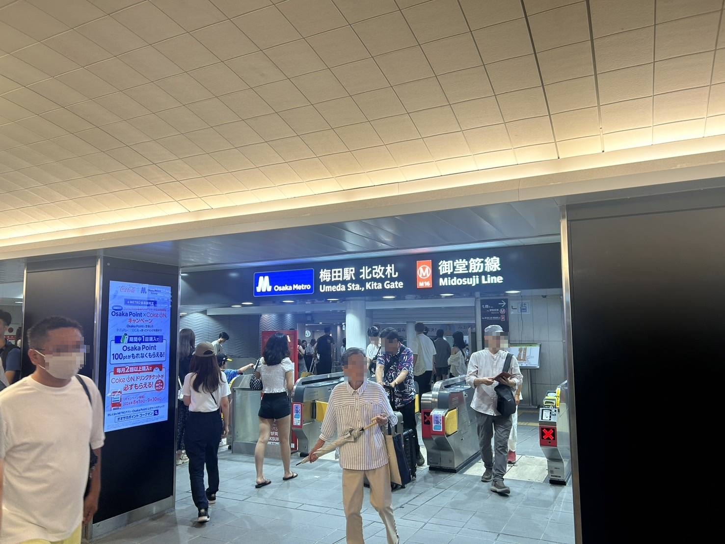 地下鉄御堂筋梅田駅 改札口を背中に右手にまっすぐ進みます。