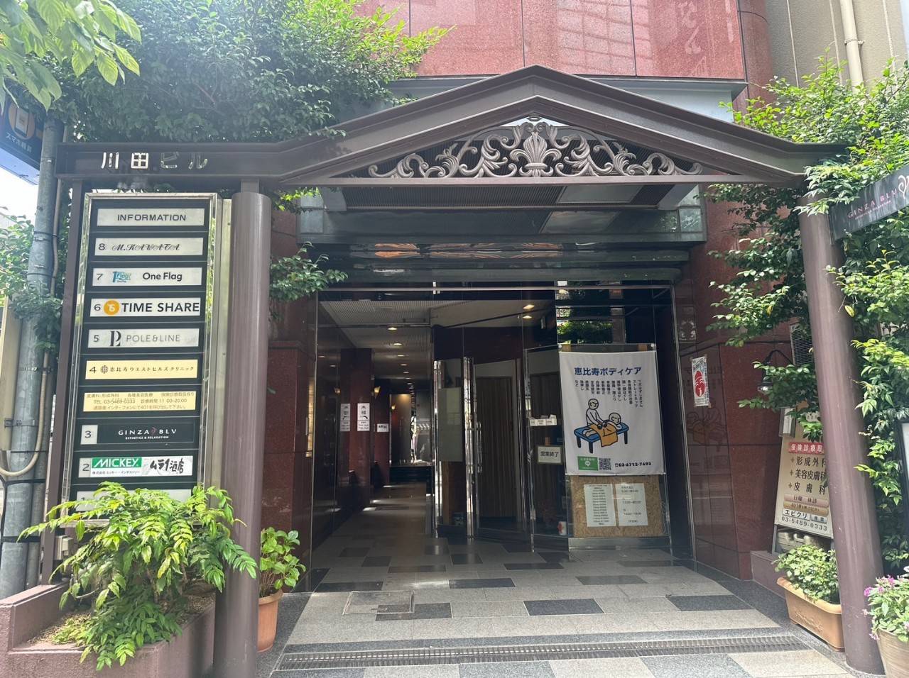 JR(山手線、埼京線、湘南新宿ライン)恵比寿駅、東京メトロ日比谷線より徒歩5分以内。アクセスがしやすく駅近の好立地。女性専用サロンにも安心なオートロックの建物です。